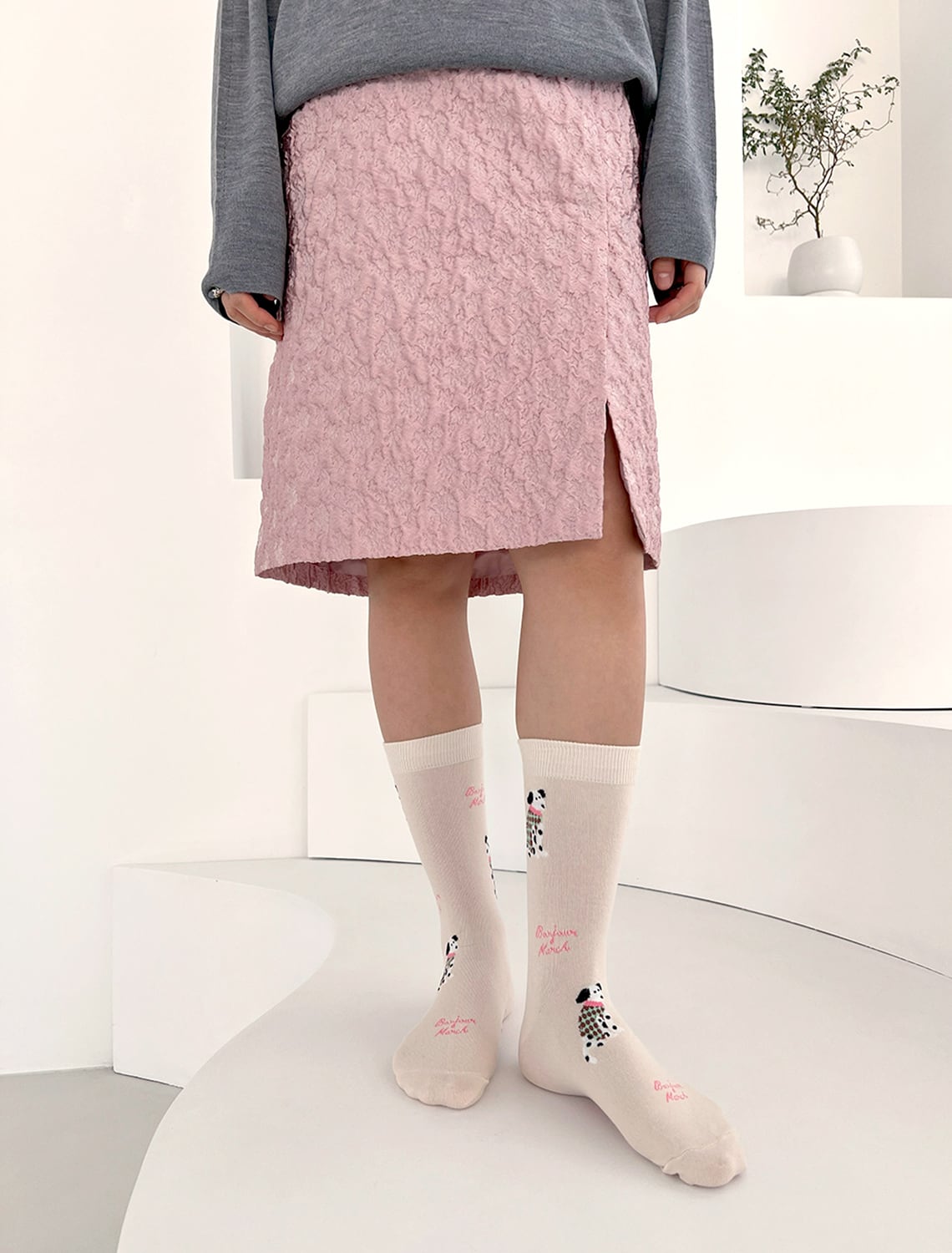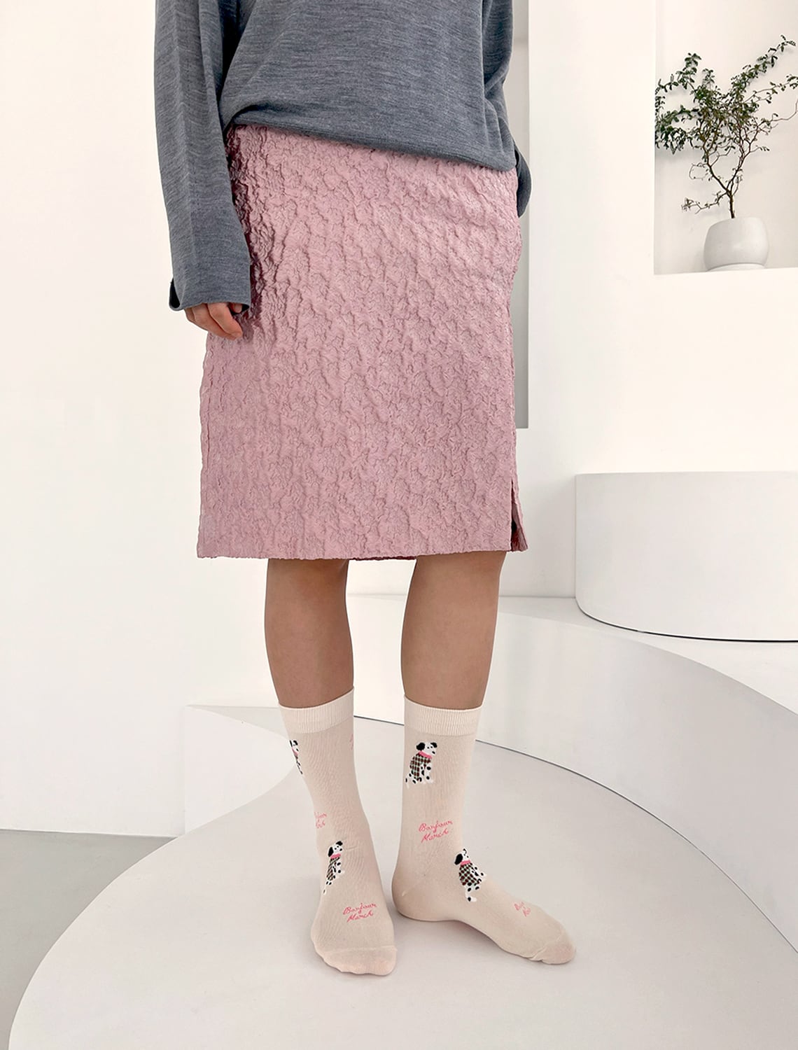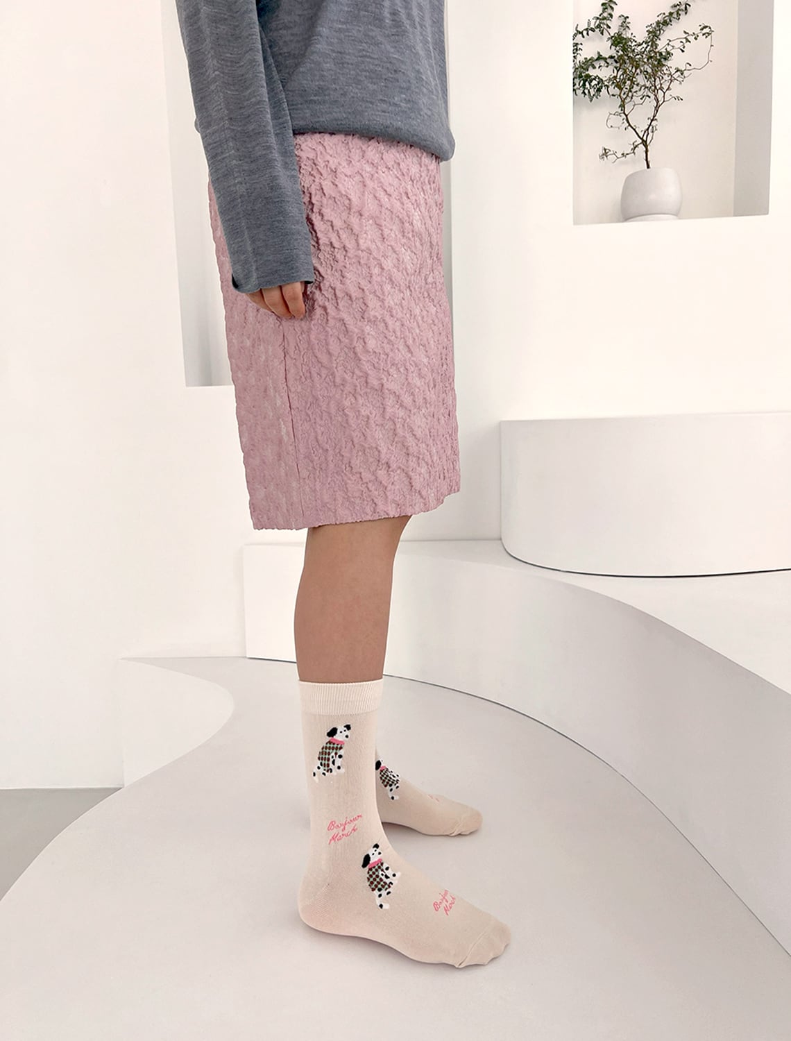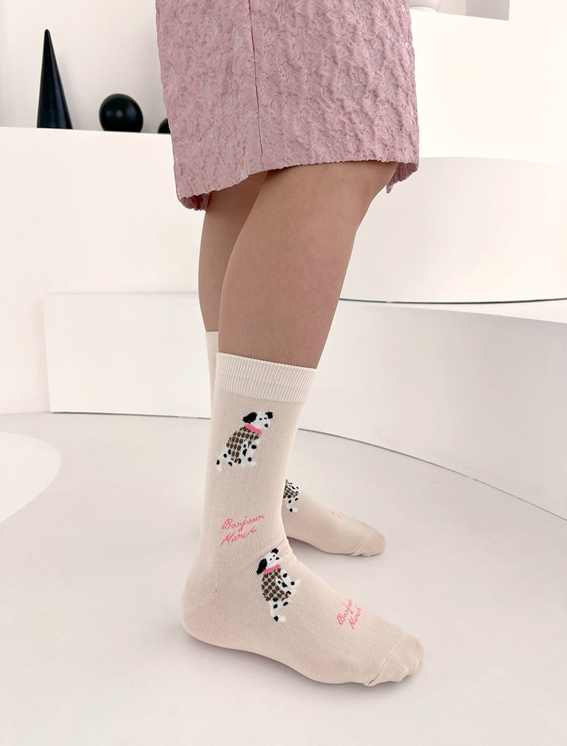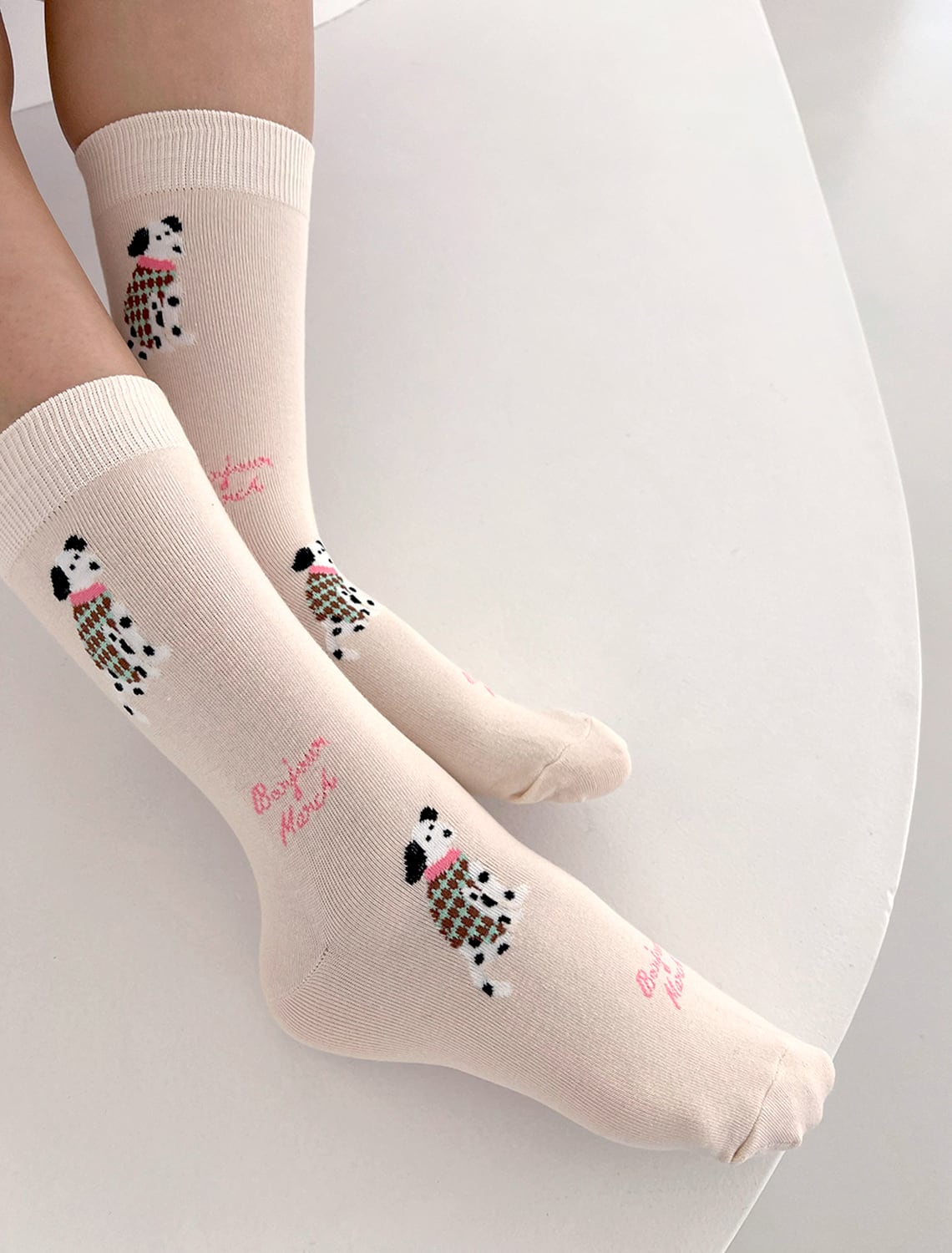 毛糸で編んだようなニット調の柄が可愛い “ Knit puppy socks ”