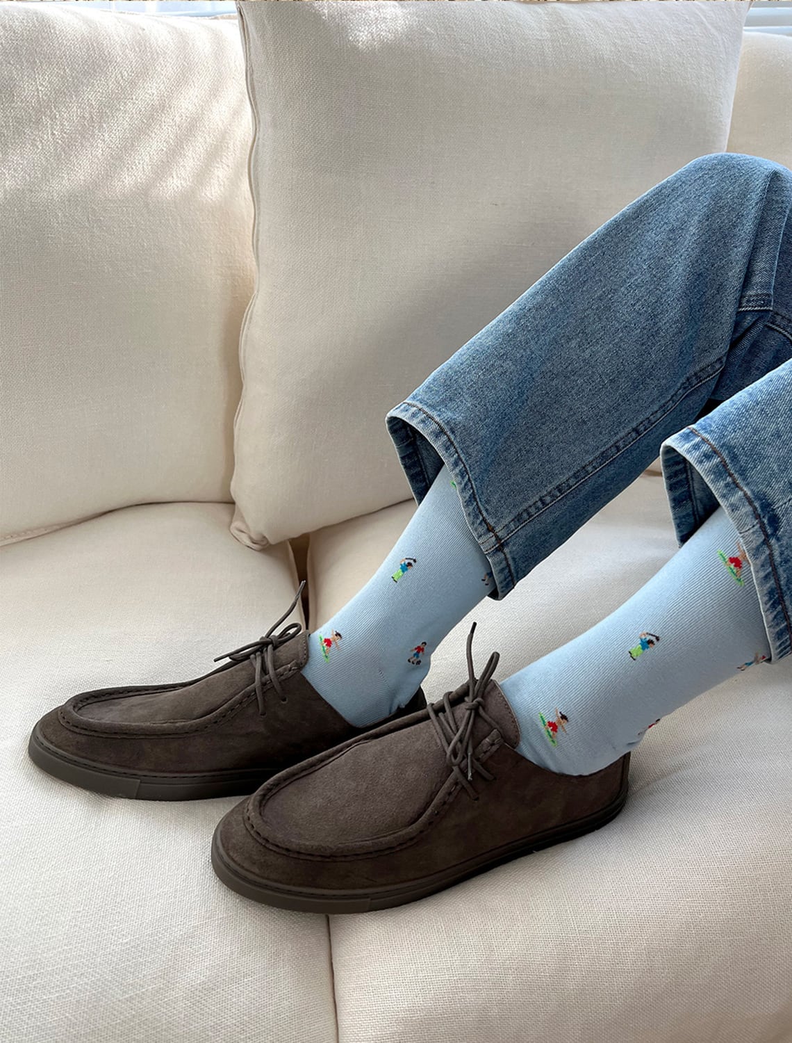 サッカーやゴルフ、サーフィンなどアクティブなモチーフが散りばめられた“ Vacation socks ”